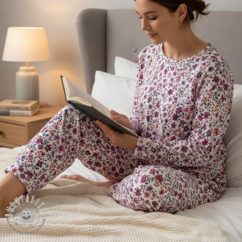 Jersey Flowers burgundy digital print ORGANIC