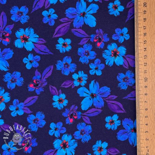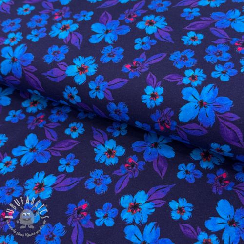 Jersey Hannah flowers blue digital print