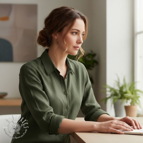 Lino prelavato dark moss green