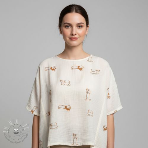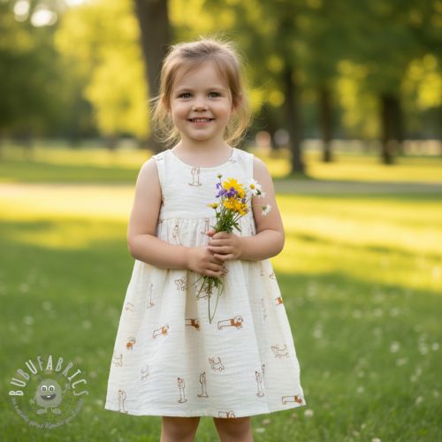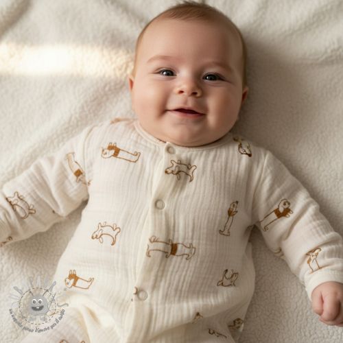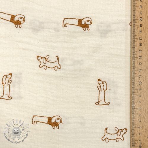 Mussola/Doppia garza EMBROIDERY Dogs ecru