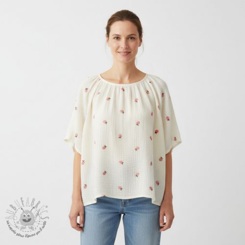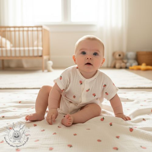 Mussola/Doppia garza EMBROIDERY Fruit peach SIMPLY NATURAL