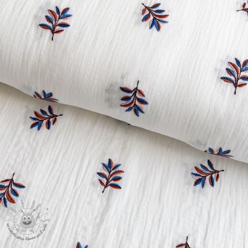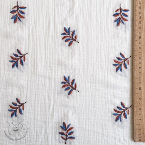 Mussola/Doppia garza EMBROIDERY Leaves white