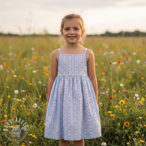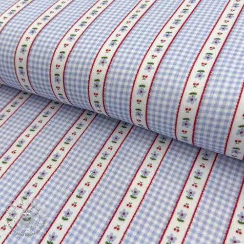 Mussola/Doppia garza Flowers check blue digital print
