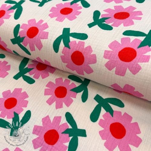 Mussola/Doppia garza Flowers natural/pink by JENNIFER BOURON ORGANIC