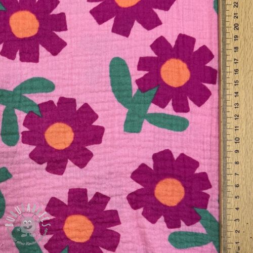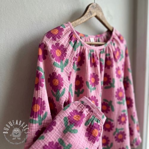 Mussola/Doppia garza Flowers pink by JENNIFER BOURON ORGANIC