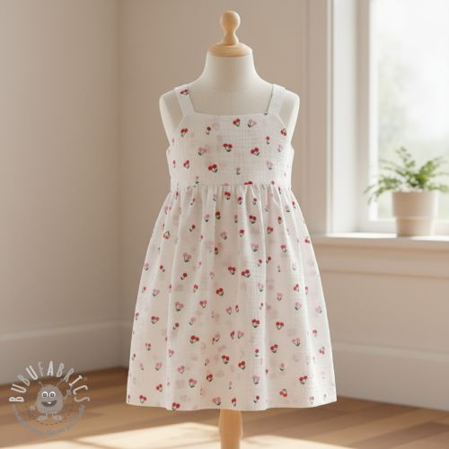 Mussola/Doppia garza Fruits cherry white