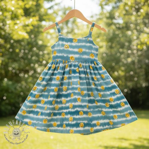 Mussola/Doppia garza Happy faces jeans digital print