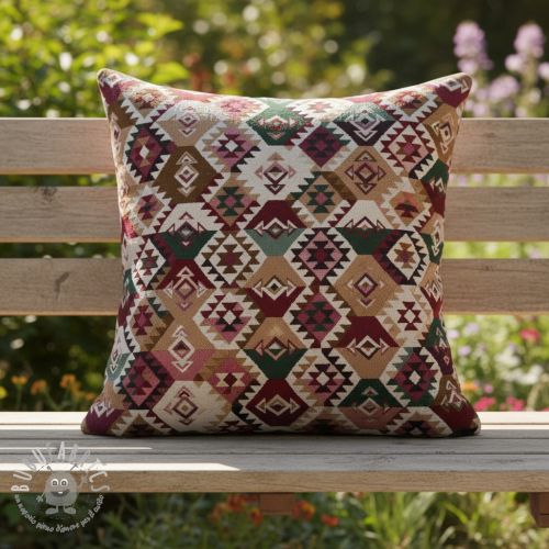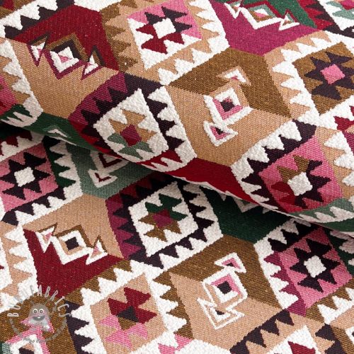 Tessuto decorativo jacquard Kilim fuchsia vert
