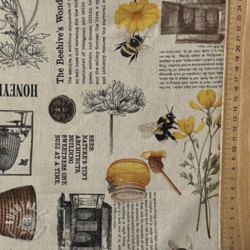 Tessuto decorativo Linenlook Bee Honey Recipe digital print