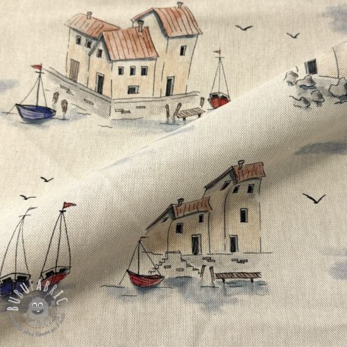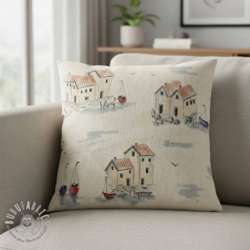 Tessuto decorativo Linenlook Seaside House View digital print