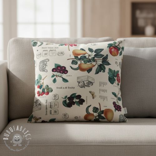 Tessuto decorativo premium Linenlook Redfruit Jam Recipe digital print