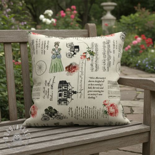 Tessuto decorativo premium Linenlook Regal Newspaper digital print