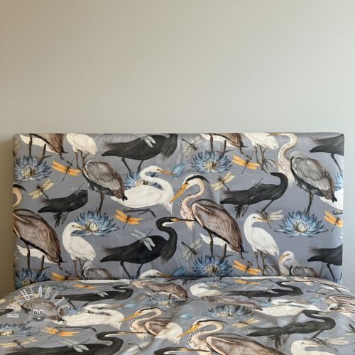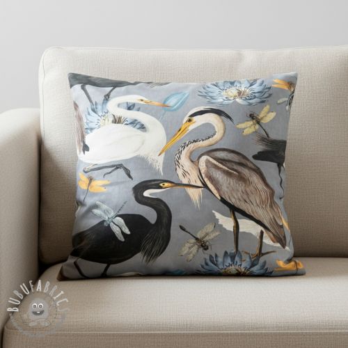 Tessuto decorativo VELVET Heron bird steel grey