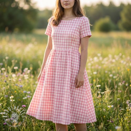 Tessuto di cotone Check pink