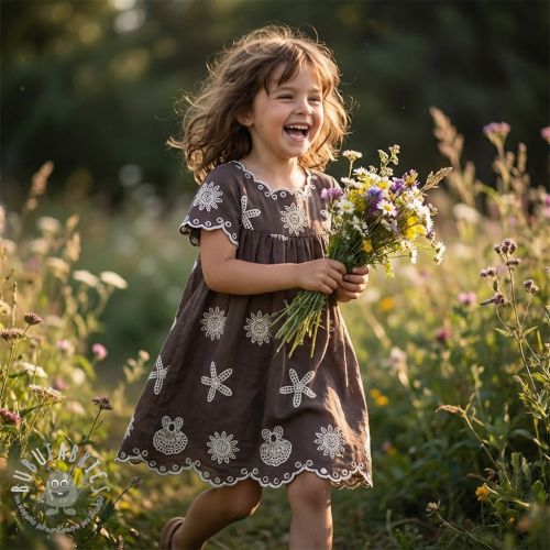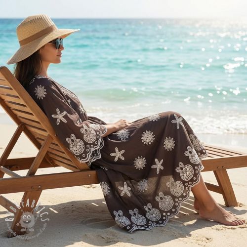 Tessuto di cotone EMBROIDERY Sea ornaments brown