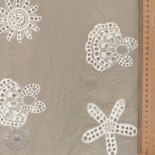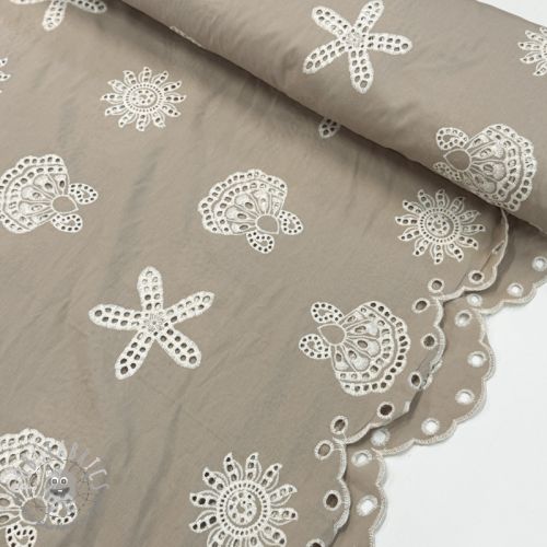 Tessuto di cotone EMBROIDERY Sea ornaments brown