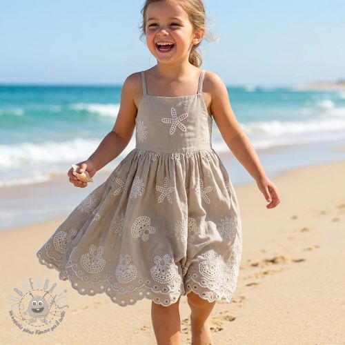 Tessuto di cotone EMBROIDERY Sea ornaments natural