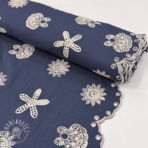 Tessuto di cotone EMBROIDERY Sea ornaments navy