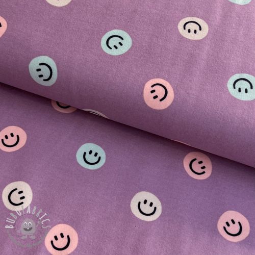 Tessuto di cotone FLANNEL Happy faces lavender