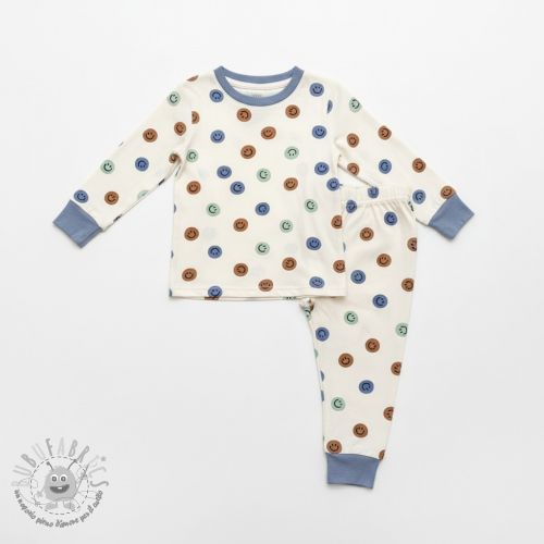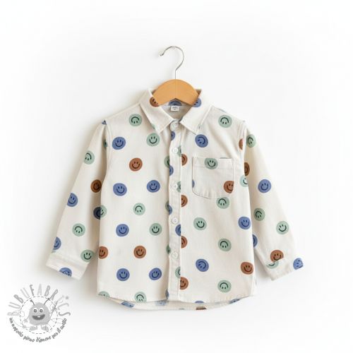 Tessuto di cotone FLANNEL Happy faces off white lilac