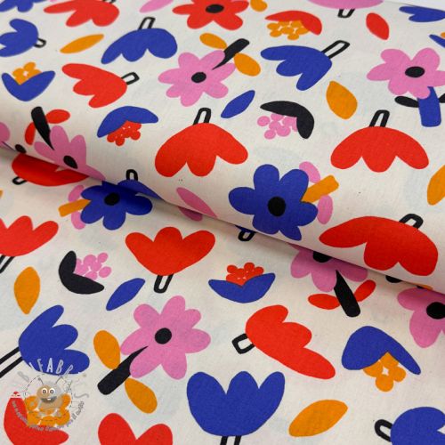 Tessuto di cotone Flowers natural/blue by JENNIFER BOURON ORGANIC