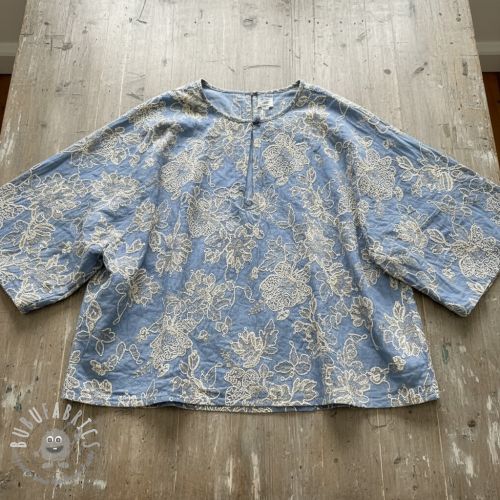 Tessuto di cotone JEANS EMBROIDERY Bouquet light blue