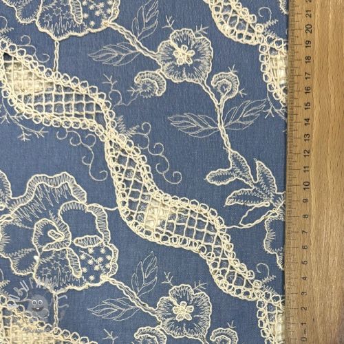 Tessuto di cotone JEANS EMBROIDERY Flora design F