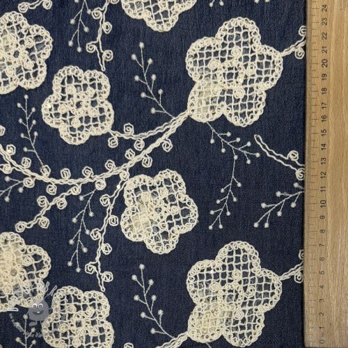 Tessuto di cotone JEANS EMBROIDERY Flora design F