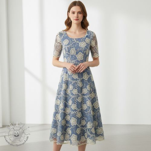 Tessuto di cotone JEANS EMBROIDERY Flora design D