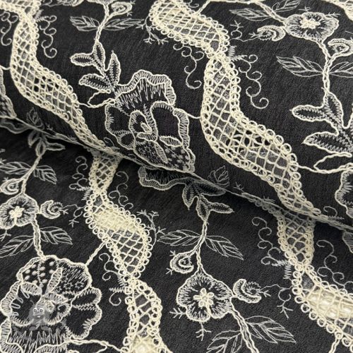 Tessuto di cotone JEANS EMBROIDERY Flora design D