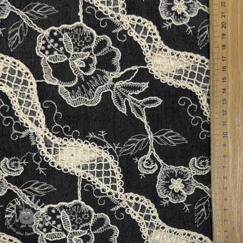 Tessuto di cotone JEANS EMBROIDERY Flora design F