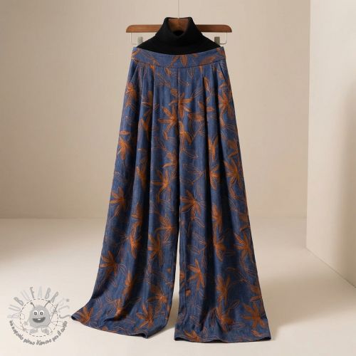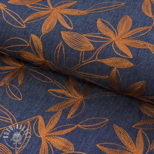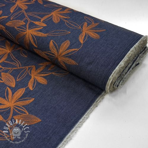 Tessuto di cotone JEANS Embroidery Flowers camel
