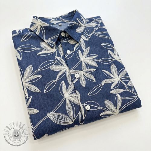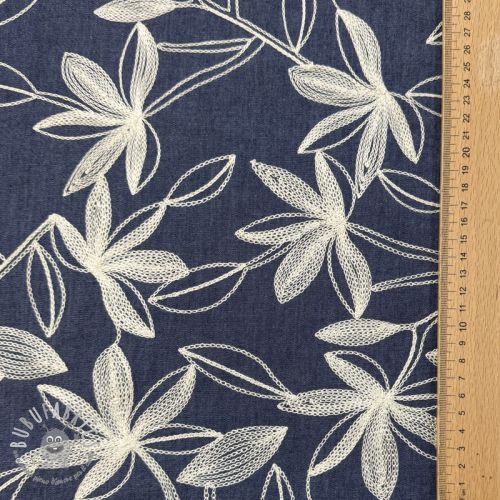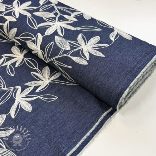 Tessuto di cotone JEANS Embroidery Flowers white
