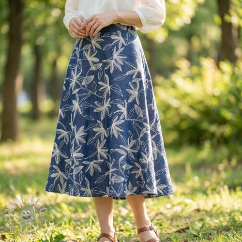 Tessuto di cotone JEANS Embroidery Flowers camel