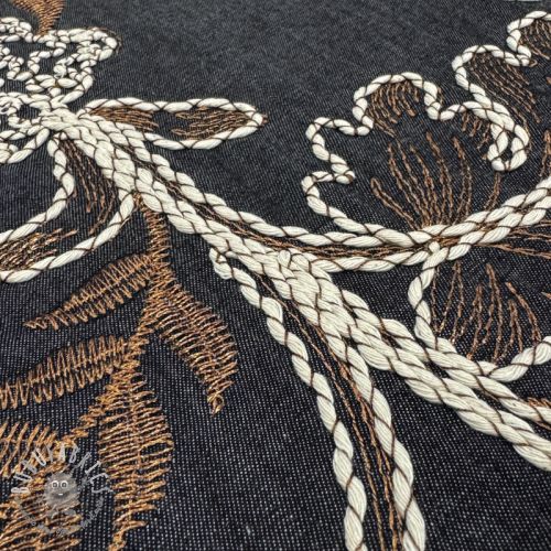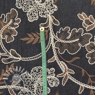 Tessuto di cotone JEANS Embroidery leaves dark blue