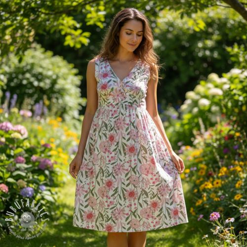 Tessuto di cotone Meadow white digital print