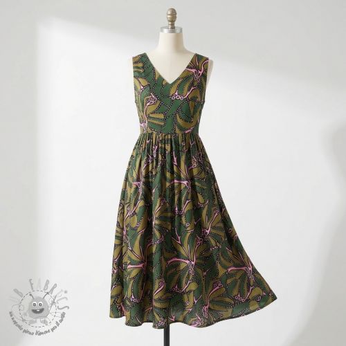 Tessuto di cotone SATIN Abstract dark green