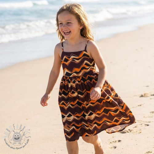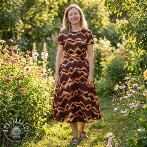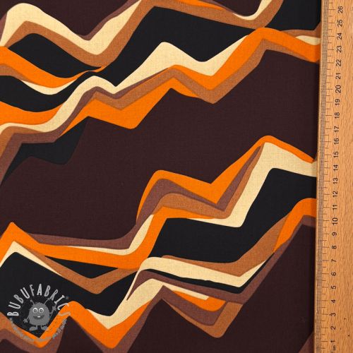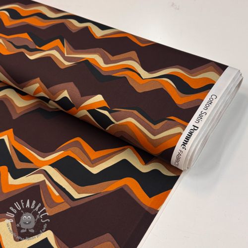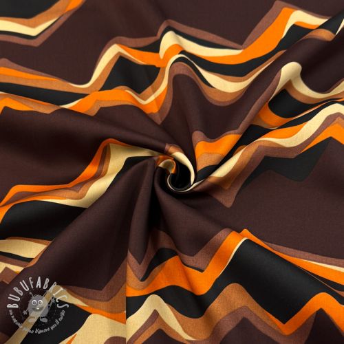 Tessuto di cotone SATIN Abstract waves dark brown
