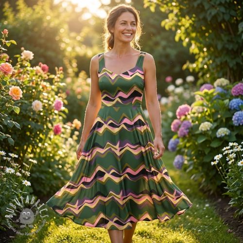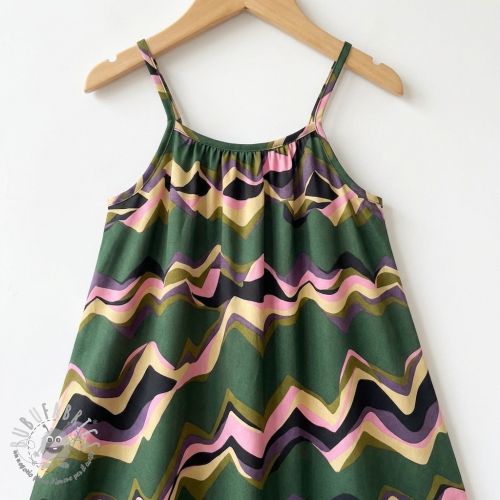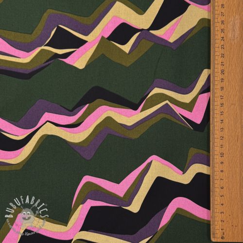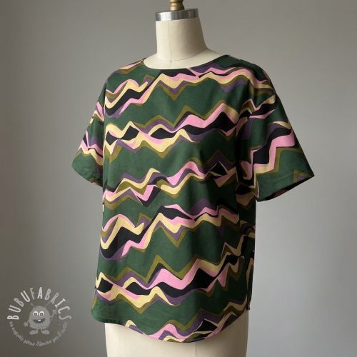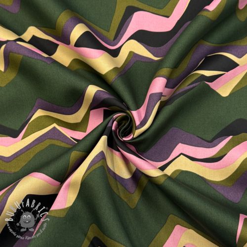 Tessuto di cotone SATIN Abstract waves dark green