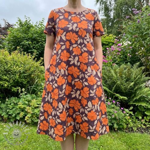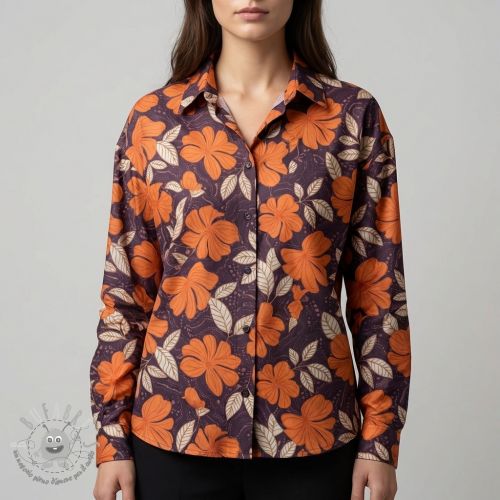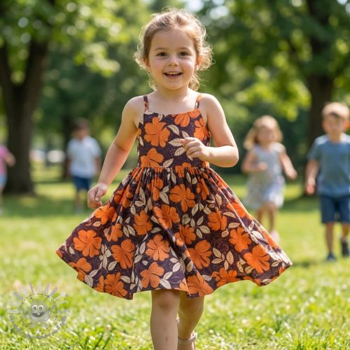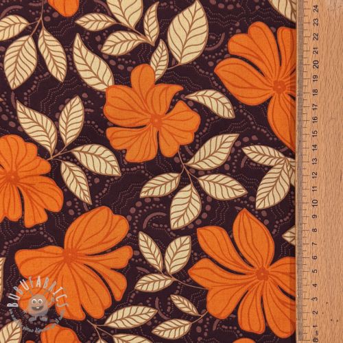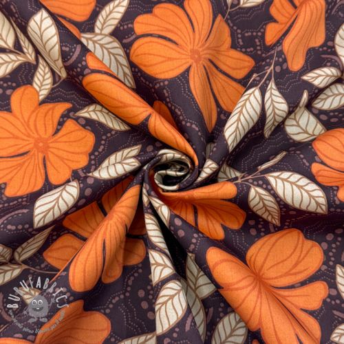 Tessuto di cotone SATIN Autumn flowers dark brown