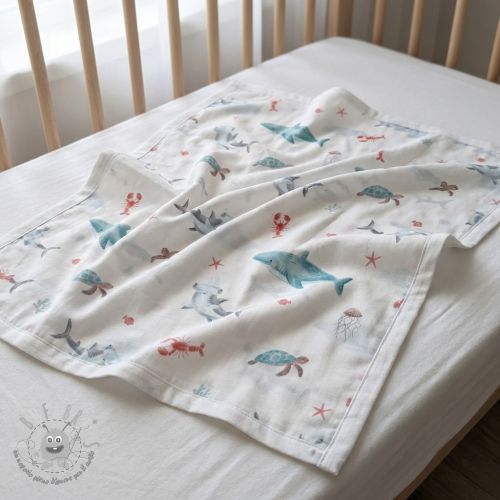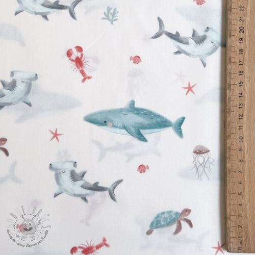 Tessuto di cotone Sea life offwhite digital print