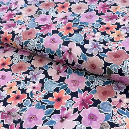 Tessuto di cotone Significant flowers navy digital print