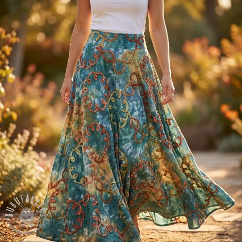 Tessuto di cotone TIE DYE EMBROIDERY Elise tape design D