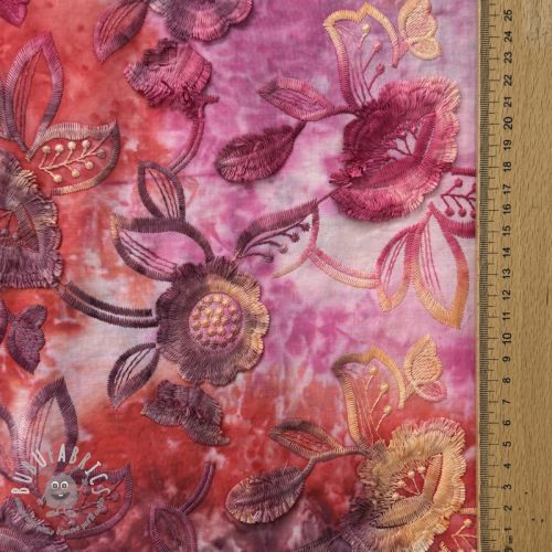 Tessuto di cotone TIE DYE EMBROIDERY Flora design A