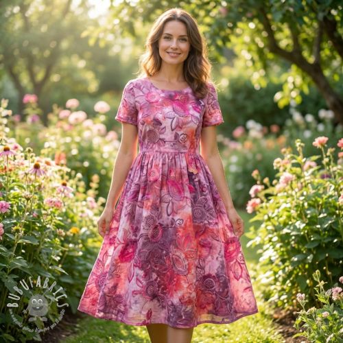 Tessuto di cotone TIE DYE EMBROIDERY Flora design B