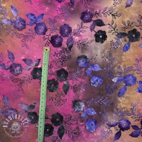 Tessuto di cotone TIE DYE EMBROIDERY Poppy design Q