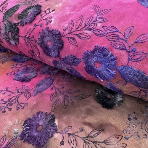 Tessuto di cotone TIE DYE EMBROIDERY Poppy design M