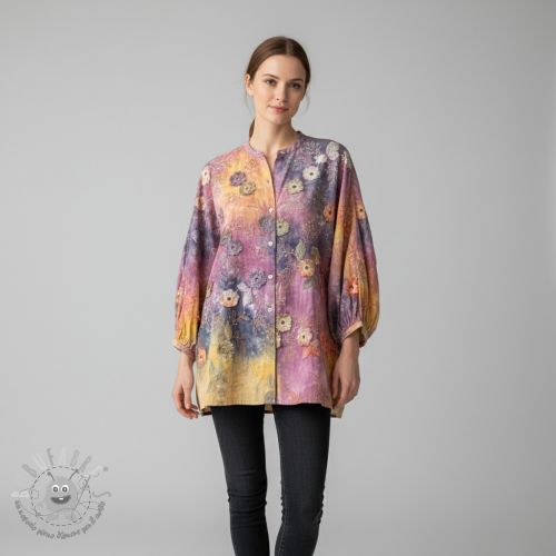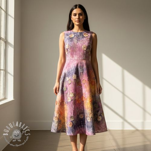 Tessuto di cotone TIE DYE EMBROIDERY Poppy design M