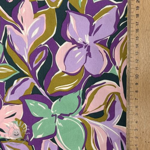 Tessuto di cotone VISCOSE Flowers dark petrol