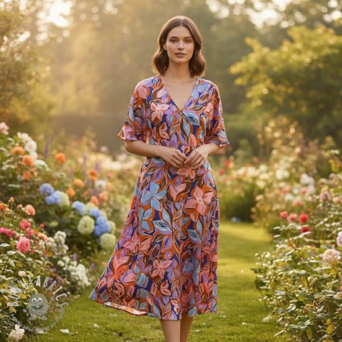 Tessuto di cotone VISCOSE Flowers navy digital print